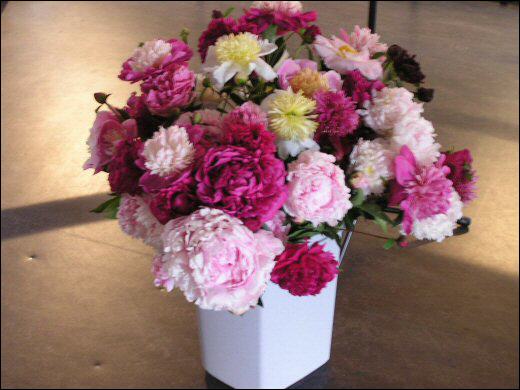 Paeoniensträuße während der Ausstellung 2014. |