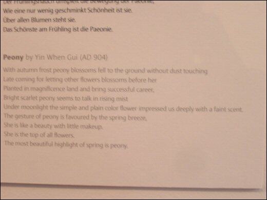 Zur Paeonienausstellung 2014 hatte die Stadt Lorsch chinesische Künstler eingeladen. Die meisten Fotos hier zeigen eine kleine Auswahl der gezeigten Werke dieser Künstler. |